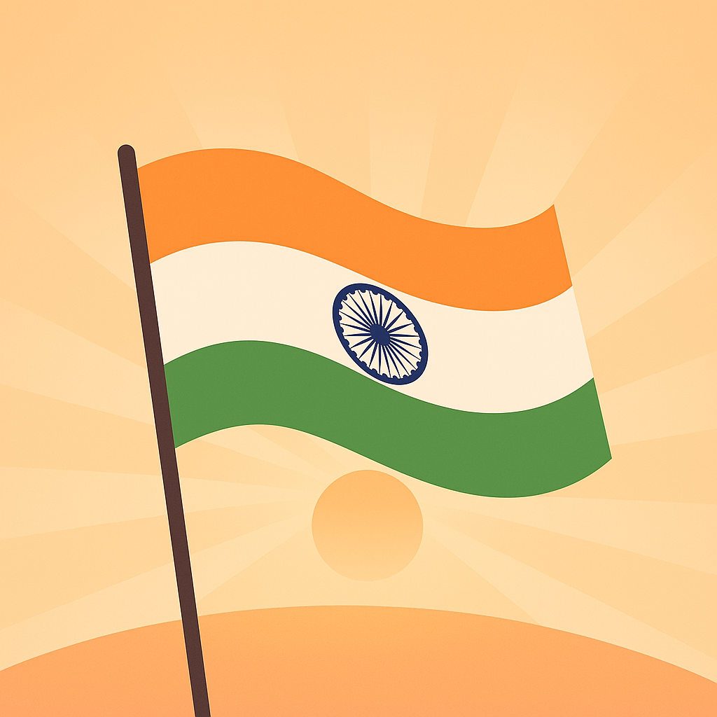 A proud depiction of India’s ethos, this concept depicts the Tiranga rising high with peaceful, uplifting energy. It’s perfect for patriotic ads and event websites because of its simple graphics and gentle tones.